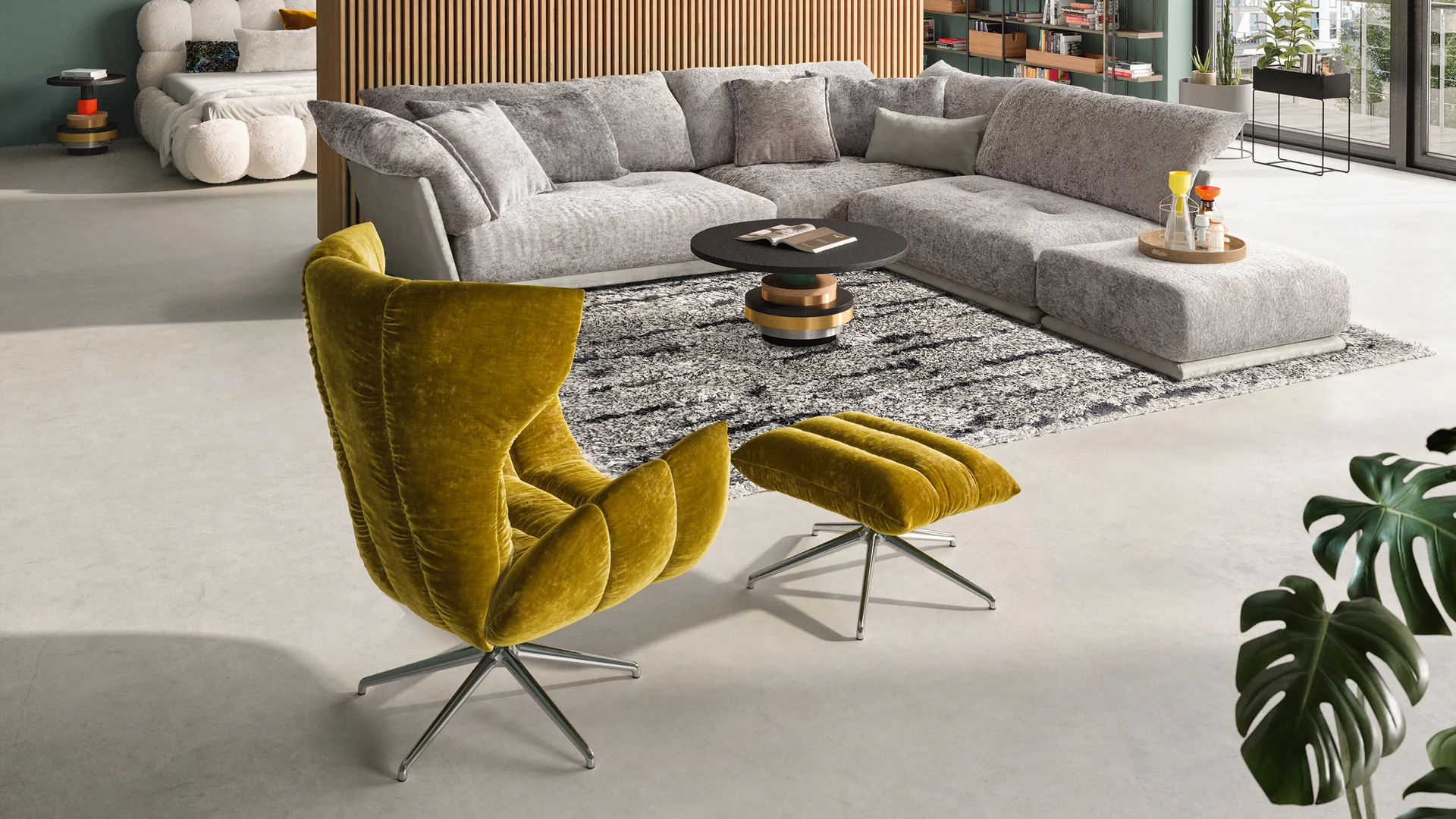 Im Vertrauen passieren die intimsten Gespräche. Zu einer solchen Form kommunikativer Geborgenheit lädt der Cassia Loungechair ein, der sich ähnlich wie die Zimtkassie öffnet und gleichzeitig umschließt. Das Untergestell, auf dem der Stuhlsessel sich sowohl drehen als auch neigen kann, ermöglicht Konversationen mit buchstäblicher Hingabe.